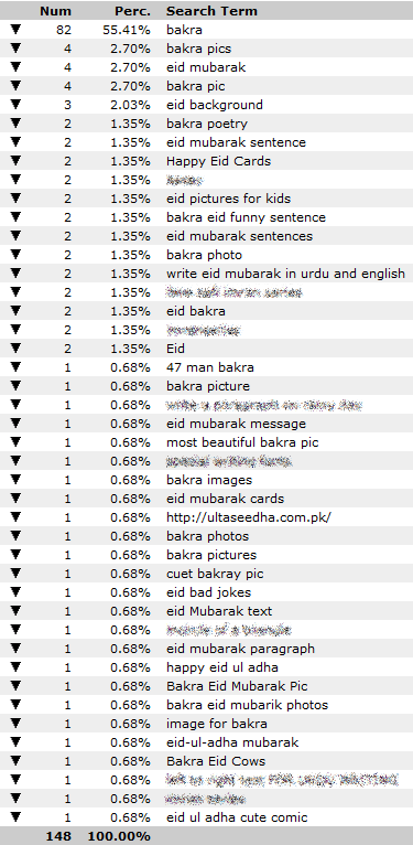 Lo and behold! The latest (at the time of this writing) keyword analysis for this ulta seedha corner of the big bad Web (I filtered keywords not related to Eid) :